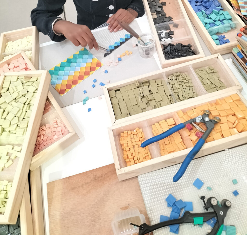 A partir de 5 ans, atelier d’une heure pour réaliser une création. Les enfants repartent avec leur petite mosaïque. Voir les créneaux horaires disponibles samedi et dimanche.